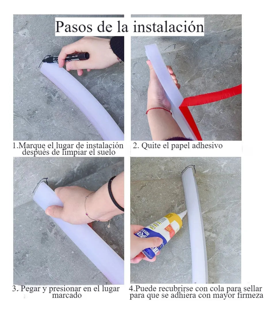 La barrera de agua de silicona que transforma tu baño: segura, flexible y lista para instalar sin herramientas.